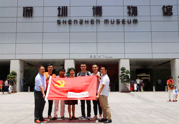 6月25日,为庆祝建党96周年,迎接党的十九大,百佳华集团党支部组织开展"庆七一,忆党史,重温深圳精神"专题党日活动。组织党员学习会,学习党的光辉历史;重新面对党旗宣誓,洗礼心灵,增强党性;参观深圳博物馆,重温深圳精神。