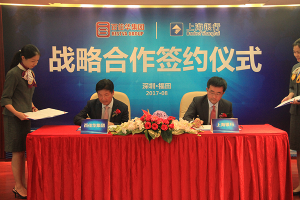 2017年8月16日,百佳华集团与上海银行签署全面战略合作协议,上海银行总行副行长黄涛、百佳华集团董事长庄陆坤出席战略合作签约仪式并分别致辞。出席战略合作协议签约仪式的上海银行相关领导有上银国际有限公司执行董事兼副总裁蔡伟松、上海银行深圳分行行长林利群、深圳分行副行长陈旋强,百佳华集团副总裁庄沛忠、财务总监助理廖映清等。
