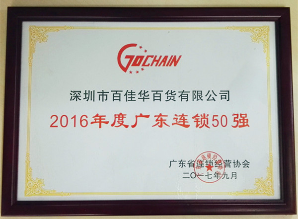 9月1日,2017中国智慧零售商业发展高峰论坛暨2016年度广东连锁五十强发布会举行,百佳华百货荣膺2016年度广东连锁五十强企业榜单。