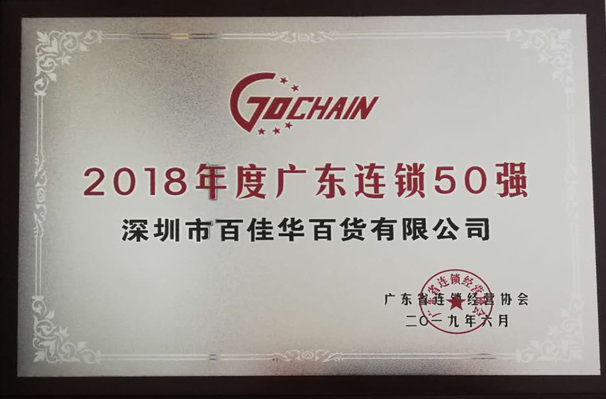 6月28日,由广东省连锁经营协会主办的《第三届广东社区商业发展研讨会暨2018年度广东连锁五十强发布会》在广州˙保利世贸博览馆举行,百佳华百货荣膺2018年度广东连锁五十强。