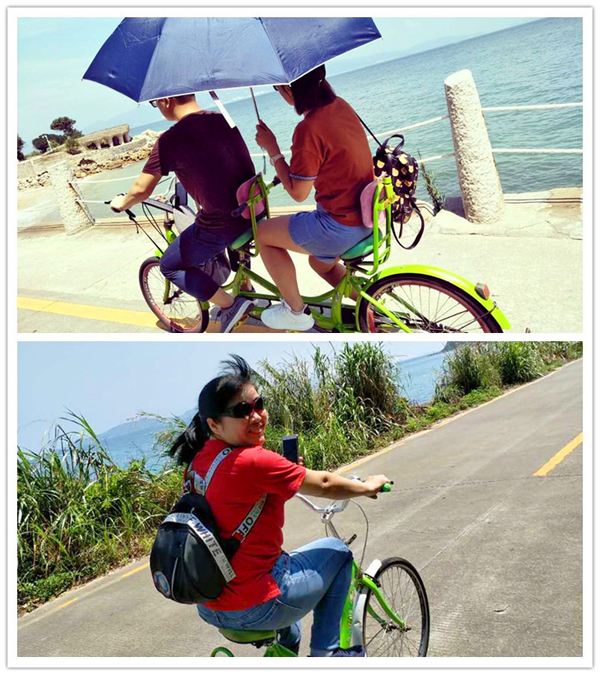 杨梅坑最有特色的是单车骑行,有单人的,双人的,骑着单车环绕大亚湾,观赏海间美景,吹着柔柔的海,一路骑向鹿咀山,沿途风光尽收眼底,惊涛拍岸间,让人想到"东临碣石,以观沧海"的霸气。