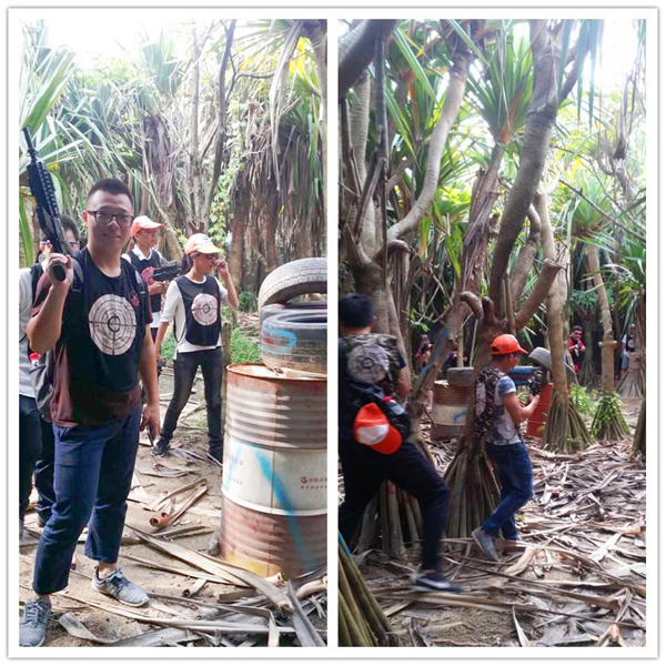 享受好美食,抽完奖,稍事休息,下午是CS野战游戏,CS是一种模仿军队作战的拓展游戏,手持玩具BB枪,配备各款野战装备,穿梭丛林之间,展现各种队形阵势,个人技巧,全部投入扮演一个士兵或将领的角色,体会一场没有硝烟也刺激的战斗,同时也在游戏中相互配合,增进了彼此之间的交流与融合。