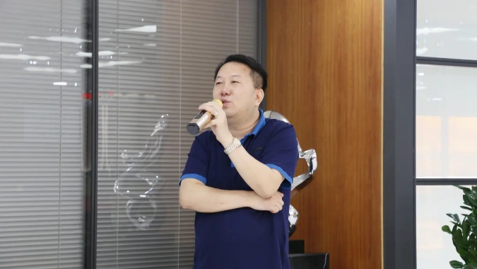 由百货公司总经理李飞致辞,李总表示了对员工的亲切慰问及对五月生日员工的深切祝福