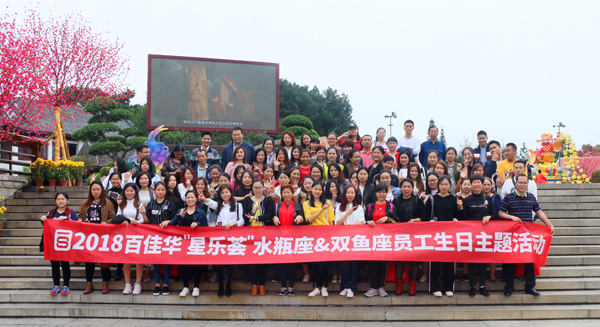 2018年3月14日、15日,百佳华分两批组织了总部和深圳区域分店150名员工,齐聚坂田领汇广场-爱碗亭和锦锈中华民俗村开展"星乐荟"水瓶座&双鱼座生日活动。