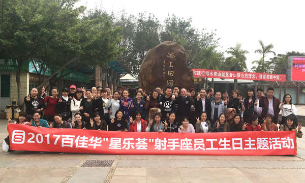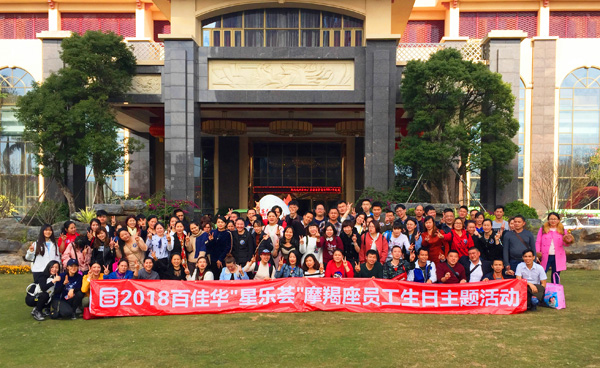 2018年1月18日,百佳华87位摩羯座员工齐聚河源农夫山泉基地、客天下水晶温泉国际旅游度假区庆祝生日活动。